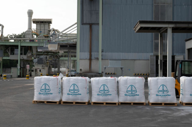 Der Quarzsand dient als Rohstoff vor allem für die Glas- und die Gießerei-Industrie. Im Hintergrund ist die LKW-Verladung zu sehen.