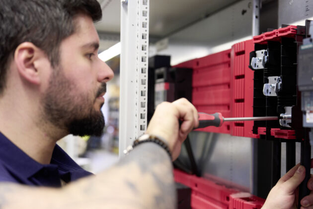Die erste Überraschung: „Wir waren erstaunt, dass bei der Sammelschienentechnik überhaupt noch so ein Quantensprung möglich ist“, sagt der Schaltanlagenspezialist. „Wir haben alle Komponenten auf einen Tisch gelegt und einfach ausprobiert. Schnell hat sich gezeigt, wie einfach alles funktioniert.“ Marcel Birkenberger sieht einen klaren Design-Vorteil, denn das werkzeuglose Click & Work-System lässt sich nur auf eine einzige Weise zusammenstecken und gibt exakt vor, wie Geräte eingehängt werden müssen. Montagefehler sind praktisch unmöglich. „Wir können jetzt sogar angelerntes Personal damit arbeiten lassen“, sagt der Experte, „angesichts des Fachkräftemangels ist das natürlich ein erheblicher Gewinn.“ Für Auszubildende fördere es zudem den Spaß an der Arbeit, wenn sie schnell und einfach zu Ergebnissen kommen. Junge Leute langfristig motiviert zu halten, sei heute eine viel größere Arbeitgeber-Aufgabe als noch vor wenigen Jahren.