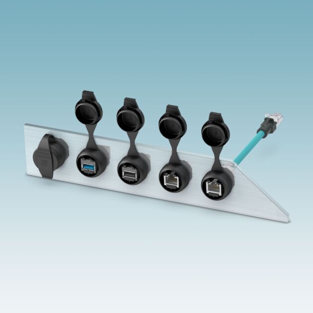 Die neuen Data Service Interfaces (DSI) von Phoenix Contact bieten eine komfortable Lösung für Servicearbeiten an Schaltschränken und Geräten. Mit verschiedenen Schnittstellen wie RJ45 und USB ermöglichen die platzsparenden Serviceschnittstellen eine einfache und schnelle Anbindung elektrischer Zusatzgeräte. Die DSI umfassen Kupplungsmodule wie USB-Typ A 2.0, USB-Typ A 3.0 und RJ45 CAT6A sowie Kabelanschlussmodule in der Ausführung RJ45 CAT6A. Durch die erhöhte IP-Schutzklasse von IP65/IP67 bei geschlossenem Schutzdeckel sind die DSI geeignet für den Einsatz in industriellen Umgebungen. Sie ermöglichen eine direkte, einfache und schnelle Durchführung von z.B. Updates und Wartungsarbeiten an geschlossenen Schaltschränken und Geräten, wodurch lange Prozessunterbrechungen vermieden werden. Die DSI eignen sich für die Vorderwandmontage bei Wandstärken von 1 bis 5mm. Durch den standardisierten Wandausbruch von Ø22,5mm ermöglichen die Schnittstellen einen platzsparenden Einbau. Die Installation erfolgt werkzeuglos und in kurzer Zeit. Darüber hinaus besteht die Möglichkeit zur Individualisierung mit eigenem Logo.