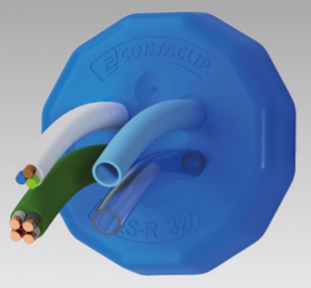 Conta-Clip erweitert kontinuierlich sein Kabeldurchführungsprogramm KES mit einem besonderen Augenmerk auf die aus zertifiziertem, hygienischem Material gefertigten Ausführungen für die Lebensmittelindustrie. Wie alle bestehenden KES-Lösungen ermöglichen auch die in charakteristischem Blau gehaltenen runden FDA-Varianten von KES-R-FDA M eine schnelle und platzsparende Einführung von bis zu 68 Leitungen in Schaltschränke oder Maschinengehäuse.