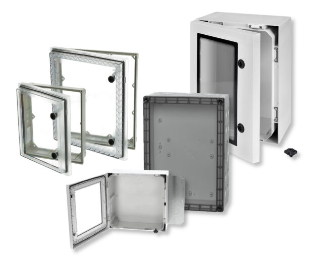 Fibox sorgt mit Fenstertüren, transparenten und rauchgrau getönten Gehäusedeckeln sowie speziellen Schutzfenstern für Durchblick in der Gehäusesparte. Für alle 17 Gehäusegrößen der witterungs- und korrosionsbeständigen Baureihe Arca IEC bietet der Hersteller entsprechende Türen mit transparentem Sichtfenster an. Auch die in quadratischen Gehäuseformaten von 300x300mm, 400x400mm und 500x500mm verfügbaren Arca-Varianten sind wahlweise mit grauem Gehäusedeckel oder Fenstertür erhältlich. Für die mit 260 Modellen variantenreichste Serie MNX führt der Hersteller Deckel in grauem oder rauchgrau-transparentem sowie auf Anfrage auch klar-transparentem Design im Sortiment. Die auf Anforderungen von Industrie, IoT und Gebäudetechnik zugeschnittenen Neo-Gehäuse sind in Gehäusegrößen 320x220x150mm, 320x320x150mm und 420x320x150mm mit transparentem oder grauem Deckel lieferbar.