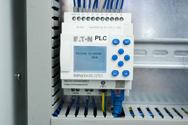 Die langjährige Zusammenarbeit und die Zuverlässigkeit von bisherigen Eaton-Lösungen veranlassten Automatyka, EasyE4 in den Schaltschränken der Pumpstationen einzusetzen. Die Steuerungen ermöglichen den Einsatz von vier Programmiersprachen. Das Projekt verwendet Kontaktplan (KOP), was einen einfachen Übergang von der aktuellen SPS-Plattform ermöglichte. Häufig wiederkehrende Abläufe wurden in Benutzerblöcken untergebracht, was das Programm ebenfalls vereinfachte. Außerdem wurde eine MicroSD-Karte als Backup hinzugefügt. Wenn eine Steuerung ersetzt werden muss, wird die Karte einfach ausgetauscht, um eine neue Einheit zu konfigurieren, was nun auch ungelernte Kräfte durchführen können. Besonders der Fernzugriff war für Automatyka wichtig. Herkömmliche Fehlerdiagnosen für Schaltschränke erfordern einen Bediener vor Ort, was zusätzliche Kosten verursacht. Die programmierbaren EasyE4-Steuerungen erlauben auf Grundlage des Modbus-TCP-Protokolls Fernzugriff ohne zusätzliche Software. Jedes Gerät mit einem Webbrowser kann dieses Protokoll nutzen. Die Steuereinheit überwacht den Betrieb der Pumpstation rund um die Uhr und sendet bei Alarmereignissen oder Störungen Textnachrichten an ausgewählte Personen. Um den Verbrauch der Pumpen zu optimieren, schaltet das System diese abwechselnd ein. Der Algorithmus schützt die Geräte vor Ausnahmesituationen und erhält die Betriebskontinuität aufrecht. Diese Automatisierung trägt dazu bei, die Mitarbeiter von Überwachungsaufgaben zu entlasten. Schwimmer dienen als zusätzlicher Schutz, da sie bei einem Ausfall der hydrostatischen Pumpe die Steuerungsfunktion übernehmen können.