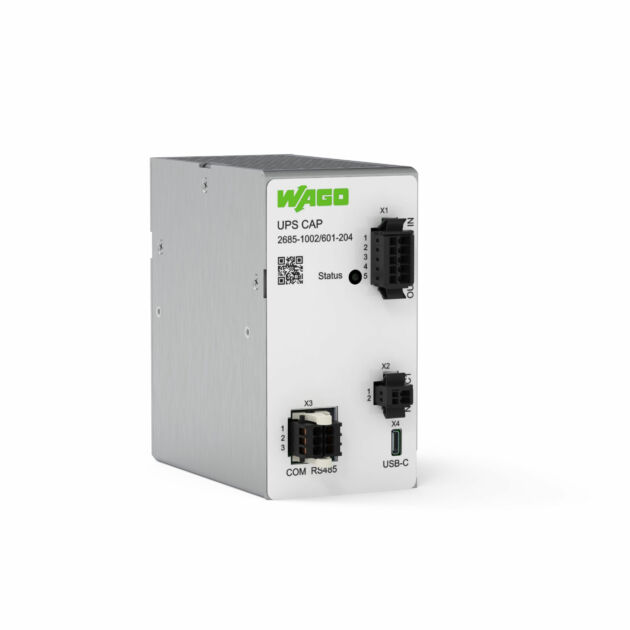 Zusätzlich zu den Produkten mit integriertem Speicher hat Wago das Portfolio um eine neue USV mit Lade- und Kontrolleinheit für externe Speicher erweitert. Diese zeichnet sich durch ein intelligentes, temperaturgesteuertes Batteriemanagement aus, das die permanente Überwachung der Batterien und eine Frühwarnung per LED oder USB-C-Auslesung schon vor dem Ende der Batterielebensdauer ermöglicht. Das effiziente Batteriemanagement sorgt für kurze Ladezeiten selbst bei großen Batteriekapazitäten und schafft eine nochmals erhöhte Lebensdauer. Außerdem wurde großer Wert auf Kompatibilität gelegt – so sind alle handelsüblichen Blei-Vließ-Akkus entsprechender Größe einsetzbar.