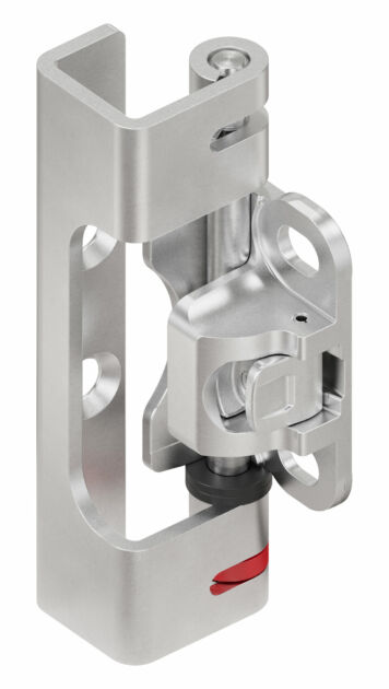 Das innenliegende und damit nicht sichtbare Scharnier lässt sich links oder rechts am Rahmen befestigen. Um die aufliegende Tür oder Klappe am Rahmen zu befestigen, wird die Türteil-Baugruppe auf die Kunststoff-Gleitscheiben des Rahmenteils gelegt. Nun wird sie einfach so lange horizontal in Richtung Scharnierstift geschoben, bis das Türteil hörbar einrastet. Durch diese Klipfunktion unterscheidet sich das neue Scharnier von den herkömmlichen. Denn der Scharnierstift ist im Rahmenteil fest verbaut und muss demnach nicht nach oben oder unten bewegt werden. Durch die Führung gelangt die Baugruppe automatisch in die richtige Position. Mit leichtem Druck gegen die Tür verriegeln die Türteile der Scharniere und sind mit dem Rahmenteil stabil verbunden. Dafür ist weder Werkzeug notwendig noch muss die Tür verschlossen werden. Bereits beim Andrücken der geöffneten Tür entsteht eine gesicherte Verbindung zwischen Türteil und Rahmen. Ebenso einfach lässt sich die Tür oder Klappe wieder demontieren. Dafür wird der Riegel an der Türteil-Baugruppe gezogen und so das Türteil entriegelt. In dieser geöffneten Stellung muss der Riegel nicht gedrückt gehalten werden, weil er in dieser Stellung einrastet. Nacheinander können nun die weiteren Scharniere in gleicher Weise geöffnet werden. Danach lässt sich die Tür oder Klappe schnell und bequem entfernen. Das neue 125° Klip-Scharnier ist schock- und vibrationsgeprüft in Anlehnung an DIN/EN 61373 Kat. 1B und wurde erfolgreich im Dauerbetrieb getestet.