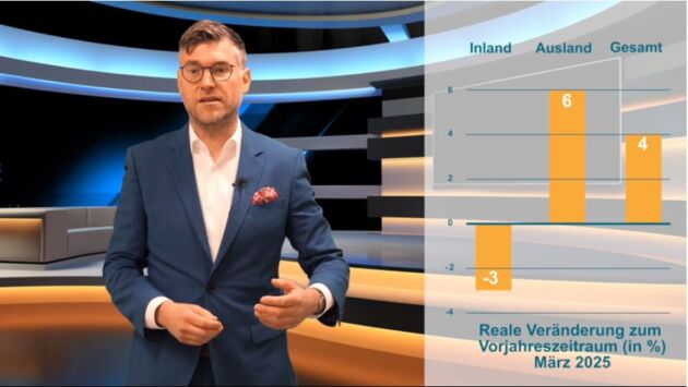 „Das Jahr hat gut angefangen, allerdings bleibt die Unsicherheit über die weitere Entwicklung außerordentlich groß – vor allem mit Blick auf die Zollpolitik der USA und mögliche Gegenmaßnahmen“, sagt VDMA-Chefvolkswirt Dr. Johannes Gernandt (Bild). Nachdem bereits im Januar und Februar leichte Orderzuwächse in die Bücher kamen, ergibt sich nun auch für das gesamte ???????1. Quartal 2025 ein Orderzuwachs von real 4% zum Vorjahr. Damit war es die erste Drei-Monats-Periode seit dem ersten Quartal 2022 mit einem Auftragsplus. Die Inlandsbestellungen lagen von Januar bis März um 1% höher als der Vorjahreswert, das Ausland verbuchte 5% mehr Bestellungen (Euro-Länder: plus 12%, Nicht-Euro-Länder: plus 2%). „Im Auslandsgeschäft sehen wir inzwischen einen Wendepunkt, das Inland bleibt unverändert schwierig. Umso wichtiger ist es, dass die neue Bundesregierung jetzt direkt mutige Reformen zur Stärkung des Standorts einläutet, die wieder zu mehr Investitionen führen“, mahnt Gernandt.