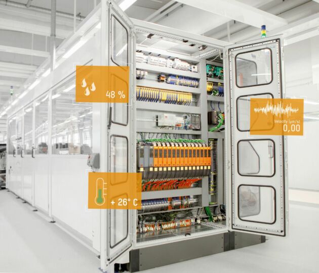 Hohe Temperaturen, Feuchtigkeit oder Vibrationen sind die Feinde elektrischer und elektronischer Komponenten. Steigt zum Beispiel die Temperatur im Schaltschrank wegen unzureichender Kühlung an, werden Fehlfunktionen oder gar Ausfälle immer wahrscheinlicher. Schlimmstenfalls kann dann eine ganze Produktionslinie stillstehen – mit beträchtlichen finanziellen Folgen. Besonders schwer zu beheben sind Fehlerursachen, die nur sporadisch auftreten, zum Beispiel bei kurzzeitigen Temperaturerhöhungen. So ist es möglich, dass nur alle paar Tage um die Mittagszeit die Sonne durch ein Hallenfenster scheint und dabei den Schaltschrank zusätzlich aufheizt. In solchen Fällen kann ein Schaltschrank-Monitoring hilfreich sein, da dem Servicetechniker aussagekräftige Daten zur Verfügung stehen, mit denen er solche Ereignisse aufdecken kann. Eine entsprechende Messbox im Schaltschrank zu installieren, ist jedoch aufwändig. Die Hardware muss angeschafft, verdrahtet und so parametriert werden, dass die Überwachungslösung mit der Steuerungs-Applikation kommunizieren kann. Diesen Aufwand scheuen viele. Es geht jedoch auch einfacher.