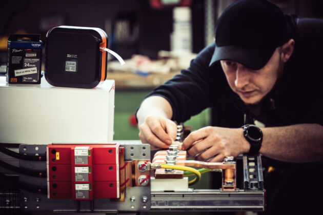 Gegründet wurde Geier Starkstromtechnik im Jahr 1970 vom Namensgeber Karl Ludwig Geier, damals noch nicht in Dillenburg, sondern im nahen Herborn. Zu Beginn lag der Fokus auf Blindstromkompensationsanlagen für die Automobilindustrie. Später entschied man sich, auch die Installation von Transformatoren mit ins Portfolio zu nehmen – nicht zuletzt ist der Slogan ‚Wir machen Ihren Trafo fit‘ von weit her auf dem Firmengebäude zu sehen. Als der Platz in Herborn aufgrund des anhaltenden Erfolgs immer knapper wurde, folgte im Jahr 2012 der Umzug an den heutigen Standort im Dillenburger Ortsteil Oberscheld. Dort hat Geier Starkstromtechnik Fertigung, Werkstatt, Lager und Verwaltung an einem Ort gebündelt. Derzeit stehen die Zeichen bereits wieder auf Zukunft, es laufen die Arbeiten für eine Lagererweiterung. 40 Mitarbeiter kümmern sich um die Wünsche der Kunden, es werden stetig mehr. „Wir bauen auf ein gesundes Wachstum“, sagt Florian Stemich, der im Unternehmen den Einkauf und die IT verantwortet. In der Werkstatt greifen er und Nils Daub häufig zu den P-touch-Etikettendruckern, inzwischen zum Modell PT-E720BT der P-touch Cube Pro-Serie.