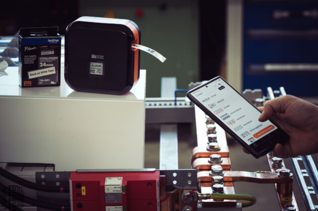 Mit dem Gerät adressiert Brother die vielen unterschiedlichen Anforderungen seiner Industriekunden. Der P-touch Cube Pro verzichtet auf ein Display, stattdessen wird das kompakte Gerät vollständig per App gesteuert, die Kopplung erfolgt schnell und einfach per Bluetooth. Wie das größere Modell PT-E920BT bedruckt das PT-E720BT Etiketten mit Schrift, QR-Codes, Barcodes oder Logos – je nach Modell bis zu einer Breite von 24 bzw. 36 Millimetern. Die Etiketten werden automatisch geschnitten, das größere PT-E920BT weist zudem eine Halbschnittfunktion auf, mit der mehrere Etiketten hintereinander gedruckt werden können. Florian Stemich beschafft für die Beschriftungen in den Anlagen von Geier Starkstromtechnik die Original-Schriftbänder von Brother. „Ich schätze die hohe Beständigkeit und die Langlebigkeit“, sagt er. Die laminierten TZe-Schriftbänder sind wisch-, wetter- und kratzfest und halten auch Extrembedingungen, seien es Abrieb, Temperatur, Chemikalien und UV-Licht, stand. Bei Geier Starkstromtechnik steht vor allem die langjährige Lesbarkeit im Vordergrund, schließlich soll auch bei Wartungsarbeiten noch gut ersichtlich sein, was hinter der Elektroinstallation steckt – auch, weil das Wartungspersonal natürlich wechseln kann. „Das ist wie im Sicherungskasten zu Hause: Man muss auch nach Jahren noch lesen können, welche Sicherung zu welchem Gerät gehört“, erklärt Florian Stemich. Für die Anforderungen professioneller Anwender bietet Brother mit den Pro Tapes Schriftbänder in verschiedenen Größen und Formen – das reicht von den selbstlaminierenden TZe-SL Pro Tapes für LAN-, Computer- oder Netzwerkkabel über die TZe-FX Flexi-Tapes zum Umwickeln und als FLe-Fähnchen für Glasfaserkabel. Besonders praktisch sind die HSe Pro Tapes auf einem Schrumpfschlauch, der beim Erwärmen mit einer Heißluftpistole schrumpft und das Kabel dann langfristig umschließt.